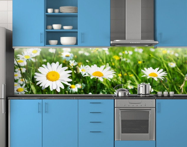 Кухонні панель ПВХ з ромашками ПВХ 62х205 см, 1,2 мм