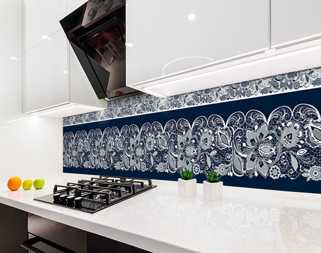 Фото панель універсальна ПЕТ, квітковий орнамент в синьому кольорі, Самофіксована 62 х 410 см (товщина 1,2 мм)