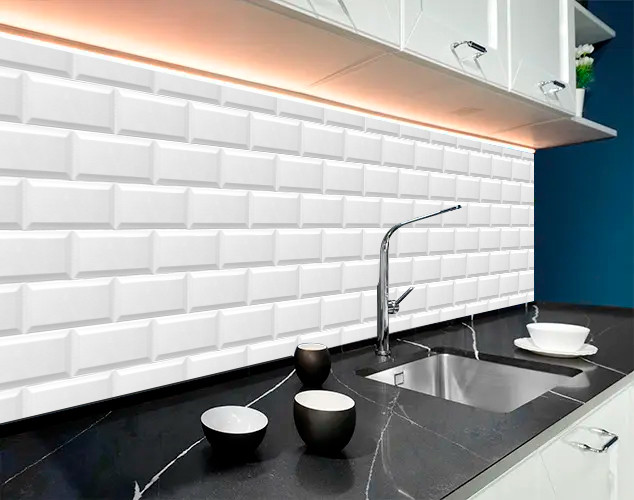 Фото панель універсальна ПЕТ, Біло-сіра, Самофіксована, 62 х 410 см (товщіна 1.2 мм), цегла в 3д